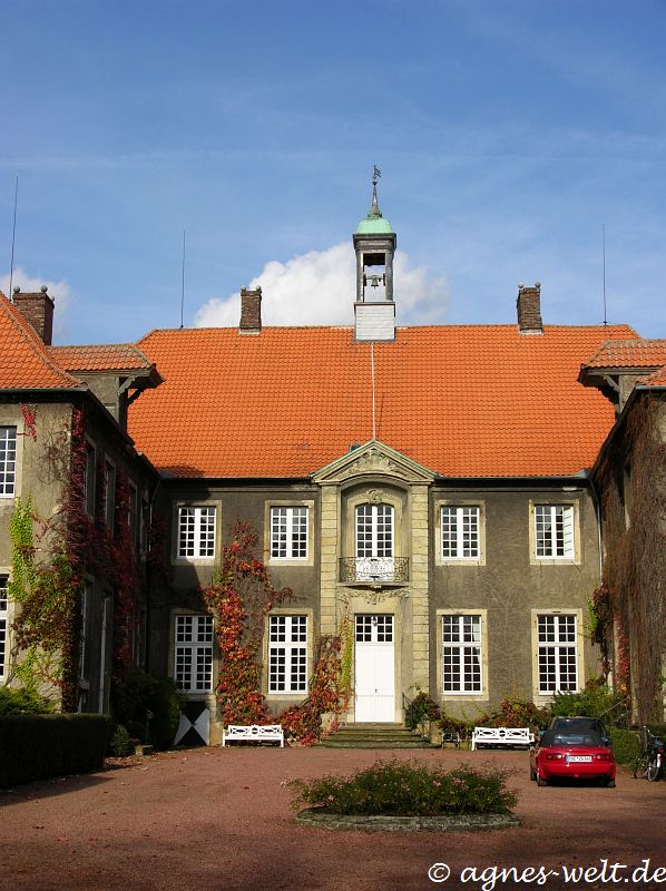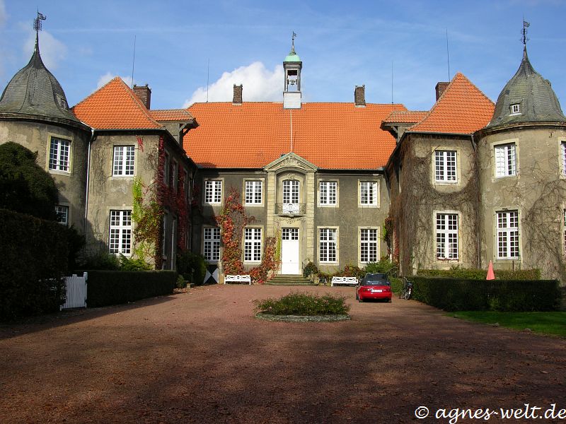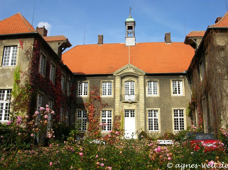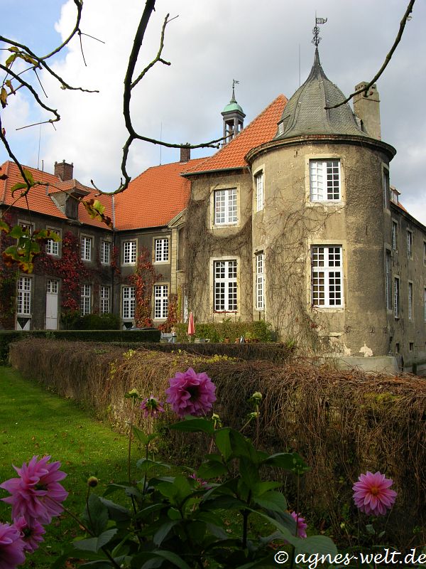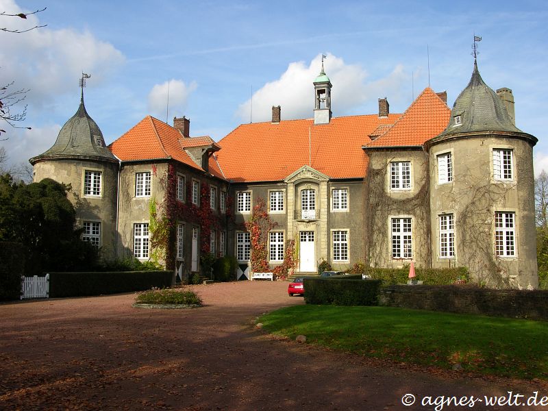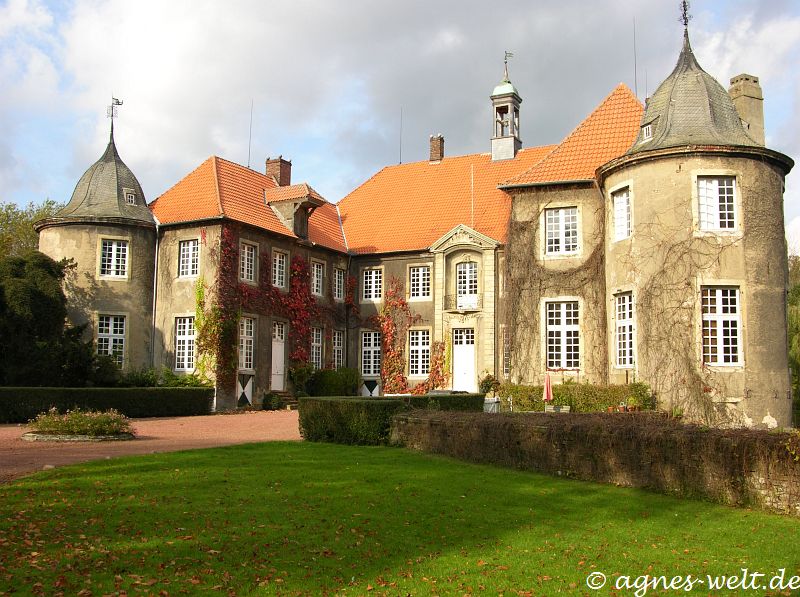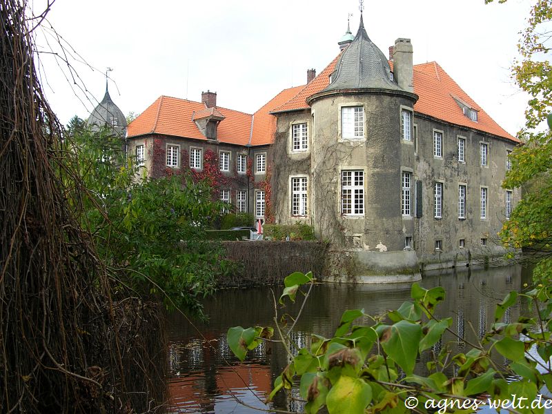Inmitten eines Parks erhebt sich aus dem Wasser der sie umgebenden Gräfte eine idyllische Mischung aus Schloss und Burg - Haus Itlingen.