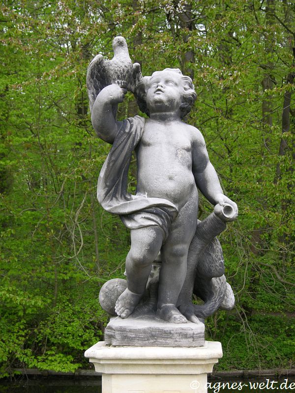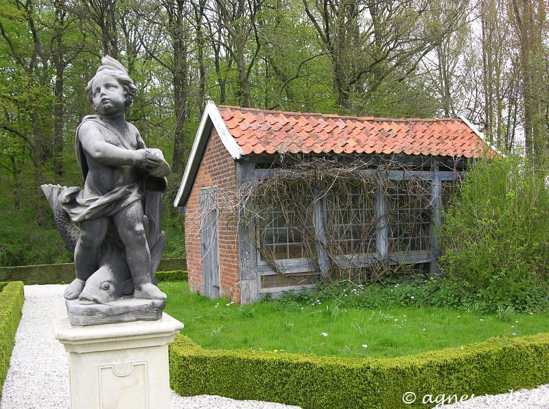 Der zu ihren Zeiten verwilderte Nutzgarten wurde später nach Originalplänen Schlauns als Barockgarten wiederhergestellt.