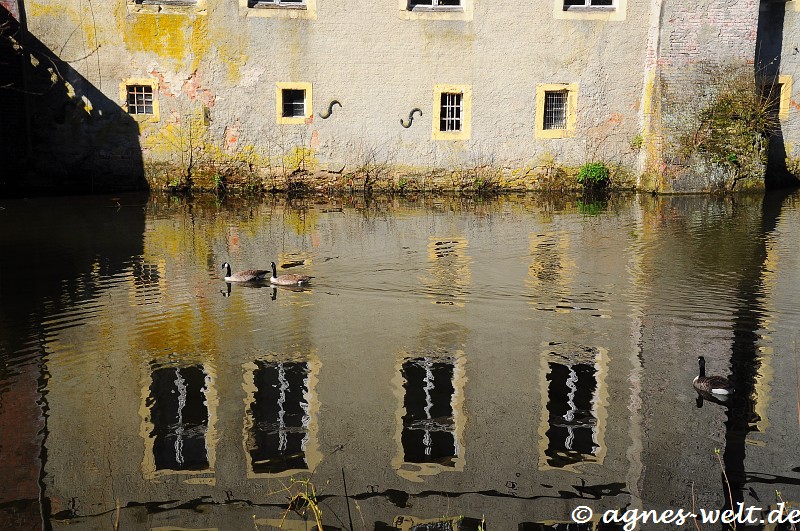Es liegt an der Stever, die auch den Wassergraben des Schlosses speist.