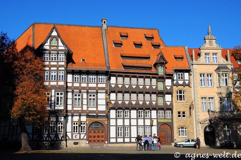 Der Burgplatz mit Burg Dankwarderode (heute Teil des Herzog Anton Ulrich-Museums) sowie dem Von Veltheimschen Haus und dem Huneborstelschen Haus.