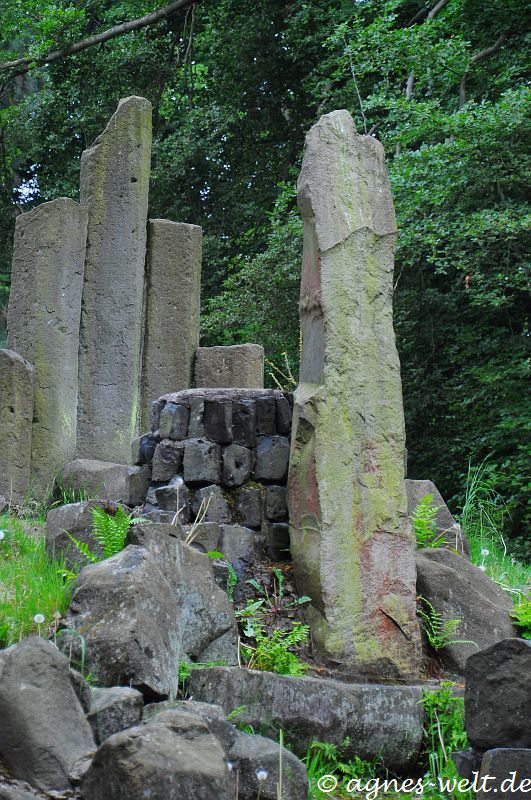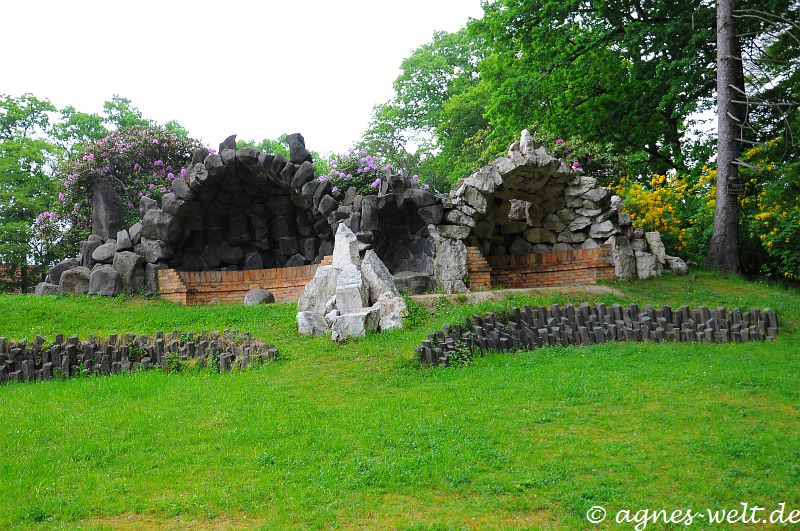 Aus den sechskantigen Säulen entstanden am See und im Park zum Teil eigenwillige Steingebilde wie Grotten, Höhlen, Pyramiden, wie der "Richterstuhl", die "Orgel" sowie "Himmel und Hölle".