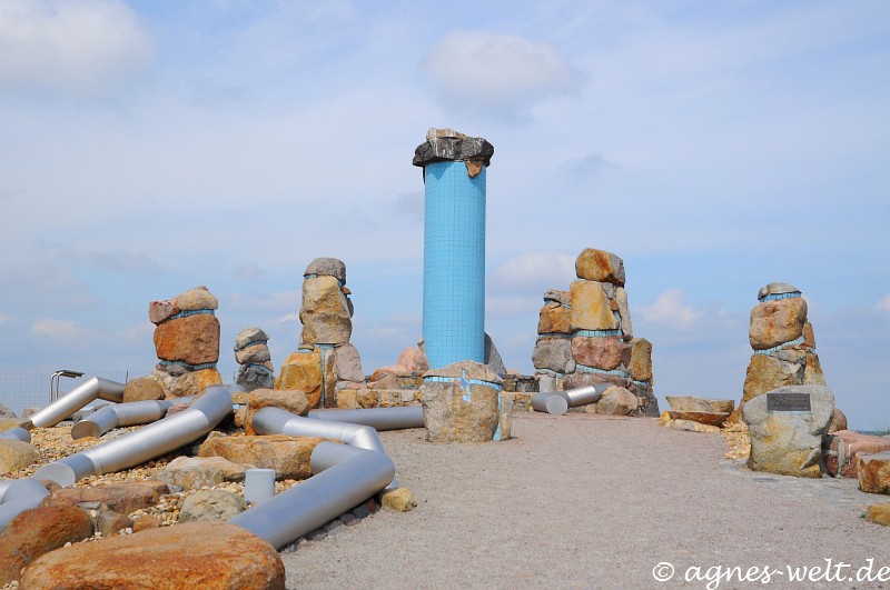 Neun Steinsäulen prägen das Kunstwerk, welches der Künstler "Feldzeichen" und Ort der Versammlung nennt.