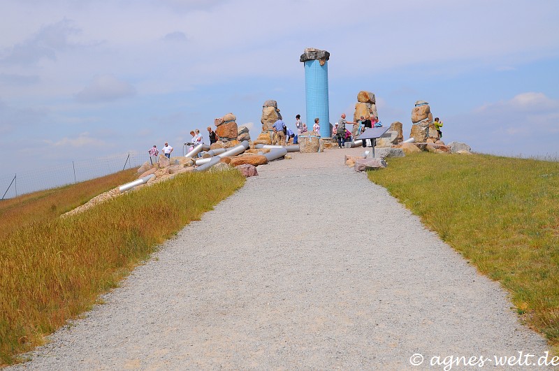 Auf dem Pfarrhügel, genießt der Besucher einen phantastischen Blick auf Park, aber auch auf das Kraftwerk, und den Tagebau.
