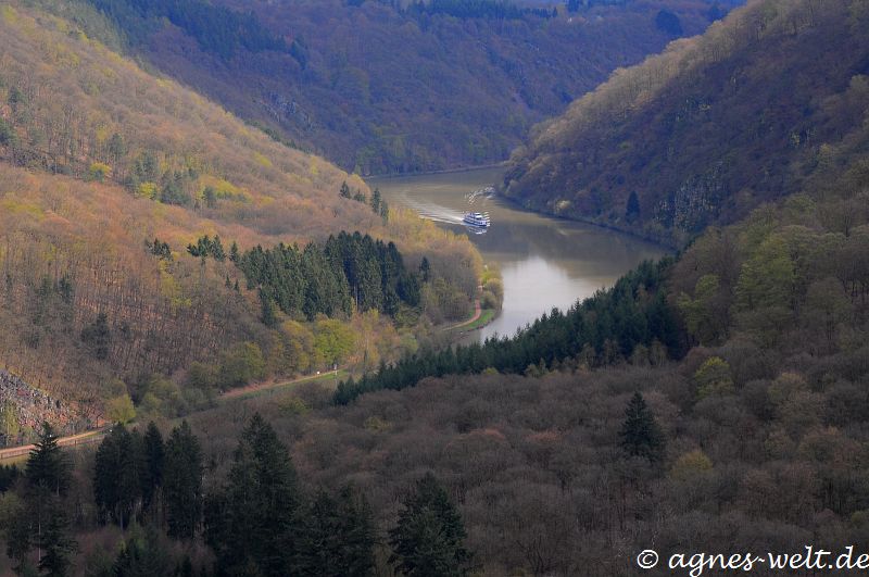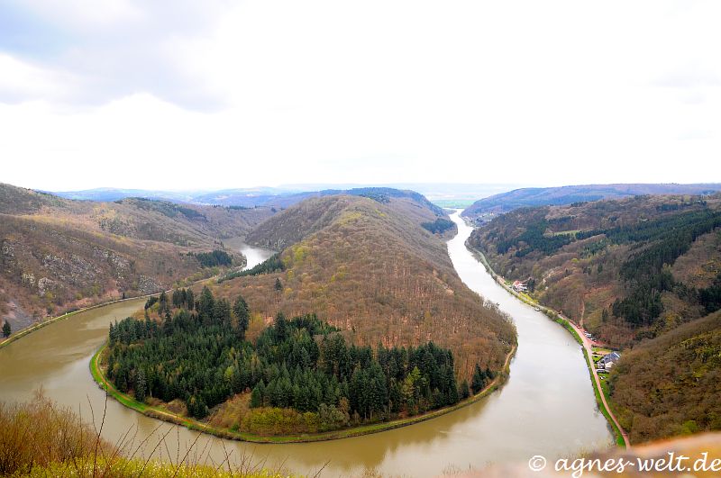 Einen schönen Blick auf die Saarschleife hat man vom Aussichtspunkt Cloef, der Aussichtspunkt liegt ca. 180 Meter hoch über dem Fluß in der Nähe von Orscholz.
