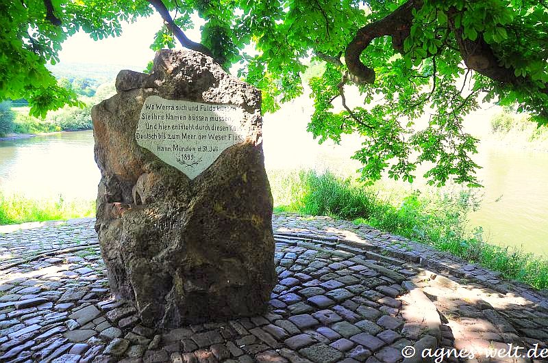 Sie ihre Namen büssen müssen, Und hier entsteht durch diesen Kuss, Deutsch bis zum Meer der Weser Fluss." Hann. Münden d. 31. Juli 1899 So steht es in Stein gemeißelt auf einem mannshohen Quarzit an der äußeren Spitze der Insel "Tanzwerder", überschattet von einer alten ausladenden Kastanie. ![]() Der Westerstein