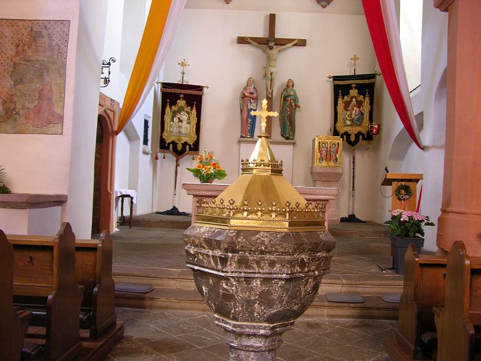 In die Ringmauer ist die spätgotische Kirche einbezogen, die in der heutigen Form aus der Zeit um 1500 stammt. Eine Besonderheit ist die Bauweise der Kirche. Es ist eine sogenannte Einstützkirche, d.h., ein einziger Pfeiler in der Mitte trägt das überaus feine Gewölbe. Viele gut erhaltene und restaurierte Fachwerkhäuser sind im Burgbering heute noch vorhanden. So wurde das Nordtor im 14. Jahrhundert erbaut und dahinter erstrecken sich die uralten Gassen des Burgortes und die bis zu 400 Jahre alten, hervorragend erhaltenen Häuser. Ehemals lebten hier Ritter und Burgmänner, Kleriker, Bauern und Handwerker. Im Jahr 1277 wird Kronenburg erstmals urkundlich erwähnt, damals entstand um seine Burg herum eine kleine Siedlung mit Mauerbering. |
