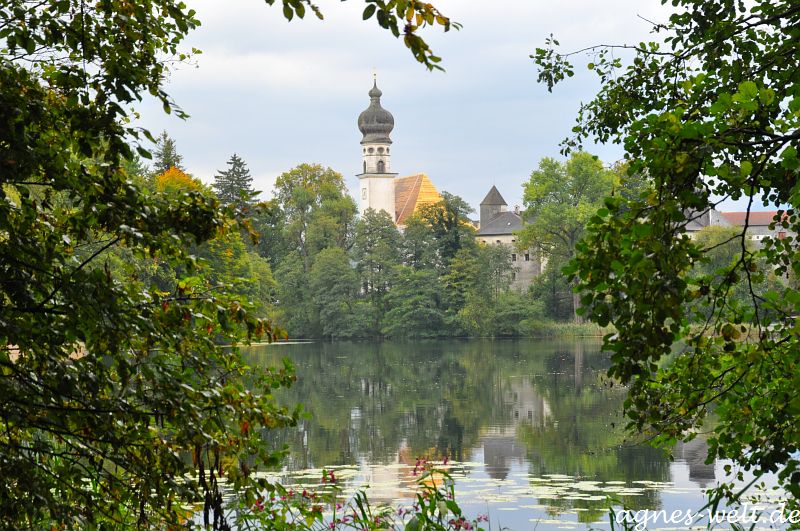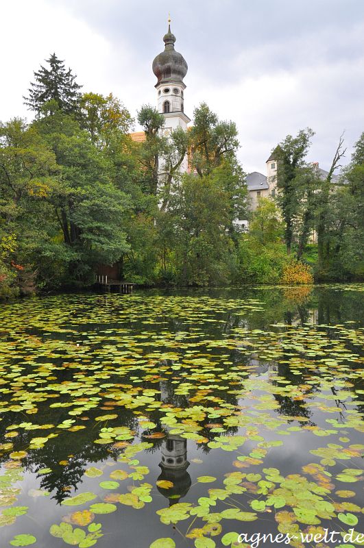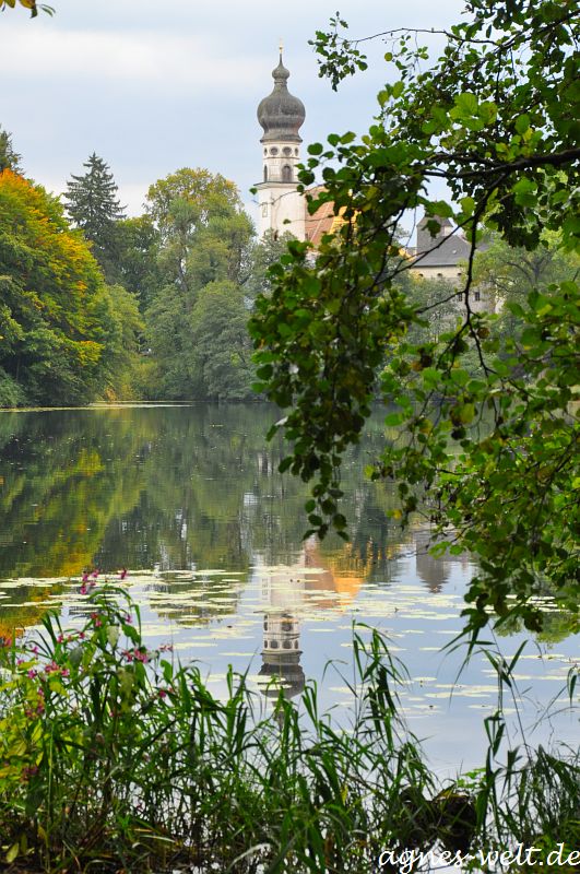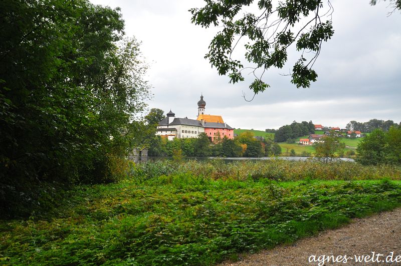 Am 30. Juli 1817 wurde Kloster Höglwörth als letztes und einziges von der Säkularisation verschont gebliebenes bayerisches Stift aufgehoben. Dies war zugleich die letzte vom bayerischen Staat durchgeführte Säkularisation. Das Kloster kam in Privatbesitz. Vor der Verlandung im Osten war die heutige Halbinsel eine Insel, (Wörth ist ein altes Wort für Insel). Wir begannen unsere Wanderung in Anger, die Pracht des Dorfplatzes veranlasste König Ludwig I. seinerzeit, Anger als das "schönste Dorf Bayerns" zu bezeichnen. In der Mitte des Platzes steht eine hohe Säule mit Marienfigur und Jesukind. Am anderen Ende vom Dorfplatz liegt die Pfarrkirche Maria Himmelfahrt. Wir gingen von Anger aus auf einem bequemen Fußweg nach Höglwörth. Leider war das Wetter absolut nicht schön, wir waren zwar zweckmäßig gekleidet, aber mit Regenkleidung einem dicken Wolkenhimmel ist eine Wanderung nur ein halber Genuß (vor allen Dingen fotografisch). Zuerst betraten wir den Innenhof der Klosteranlage, konnten aber die Gebäude nicht betreten. Die Klosterkirche ist heute eine Filiale der Pfarrei Anger. Der Höglwörther See ist ca. 13,5 Hektar groß und 8 bis 10 m tief. Auf einem gut ausgebauten Weg kann man den See umrunden. Es bietet sich immer wieder einen super Ausblick auf das Kloster. Besonders schön wären die Spiegelungen im See gewesen, wenn denn das Wetter mitgemacht hätte. Tourenkarte und Wandervorschlag |