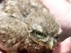 Winni setzte die vier kleinen Kauzbabys auf eine Astgabel, damit wir sie dort photographieren konnten, aber die zappeligen kleinen Wollknäule blieben nicht still sitzen und schwups waren zwei herunter gezappelt.