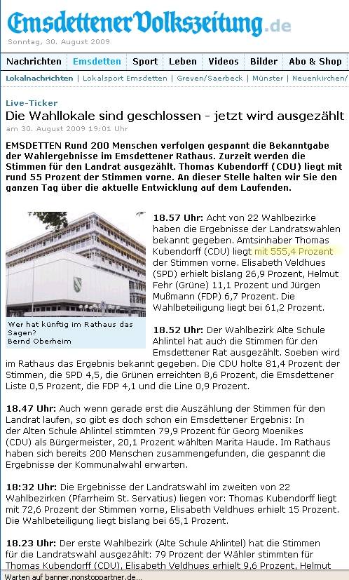 Bei uns gab es einen erwähnenswerten Zwischenbericht bei der Wahl des Landrates.