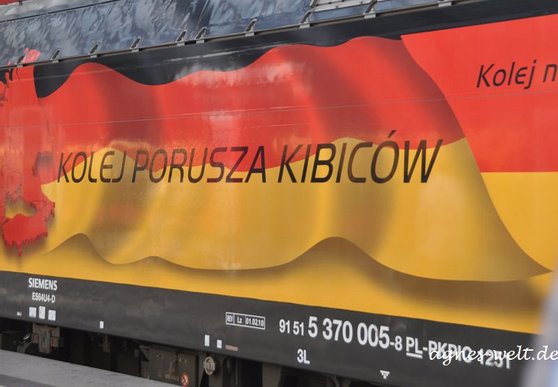 Wie ich jetzt gelesen habe, waren sechzehn Lokomotiven in nationalen Farben der teilnehmenden Mannschaften und vier mit den Abbildungen der polnischen Stadien während der Fußball- Europameisterschaften im Einsatz, und dieses war wohl noch eine davon.