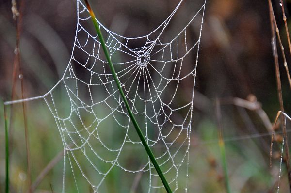 Bei dem Spinnengewebe störte mich zuerst der Grashalm im Vordergrund, ich wollte ihn schon fast abbrechen, als ich sah, dass das Gewebe daran aufgehangen war.