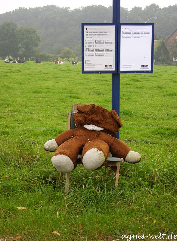 Das ist ja ein süßer Sitzplatz, den du uns zeigst. Wartet der Teddy auf den Bus?