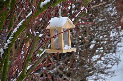 Das ist nicht unser Vogelhäuschen, das hat eine Nachbarin in die Anlagen gestellt.