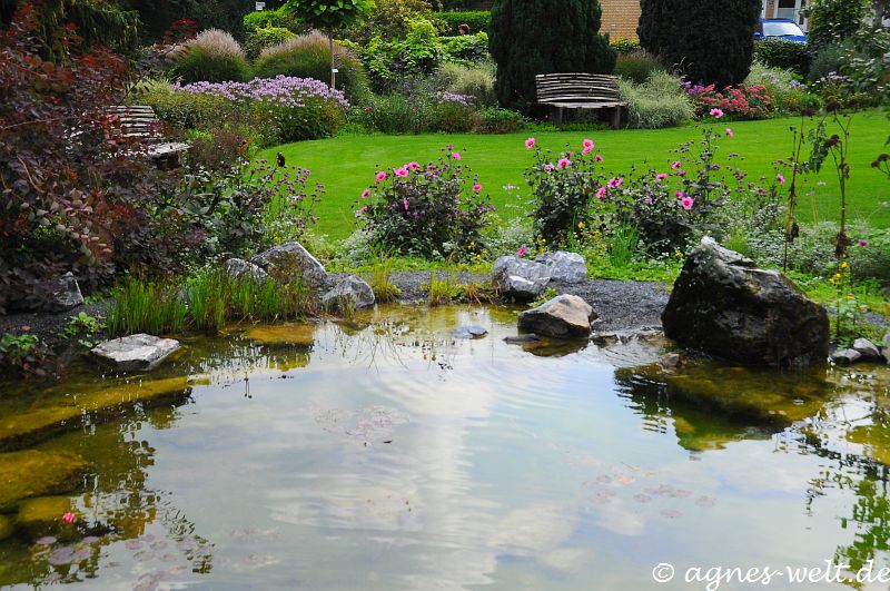 Ich dachte zuerst, es wäre eine echte Jäterin. Aber auf dem anderen Foto habe ich richtig erkennen können. Ein sehr schön gestalteter Garten ist das, so natürlich. Das mag ich. Trotz aller Herbstanzeichen ist doch noch erstaunlich viel saftig grün, hier auch.