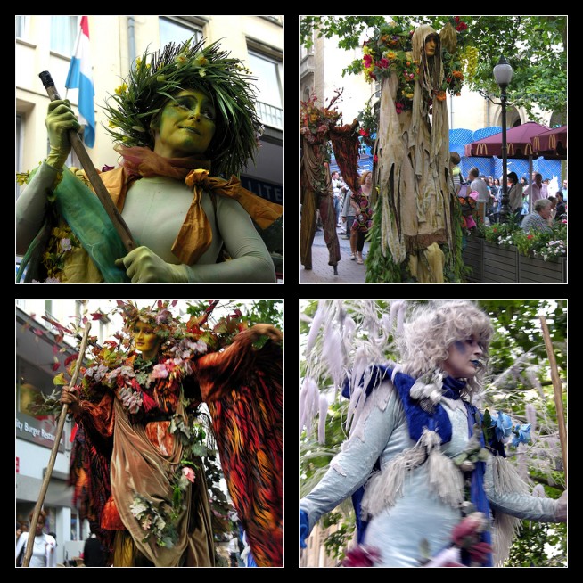 Sie waren den Jahreszeiten entsprechend geschmückt, gekleidet und geschminkt, und gingen zur Musik von Vivaldi (Die vier Jahreszeiten) auf Stelzen durch Luxemburgs Innenstadt.