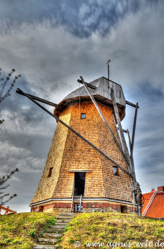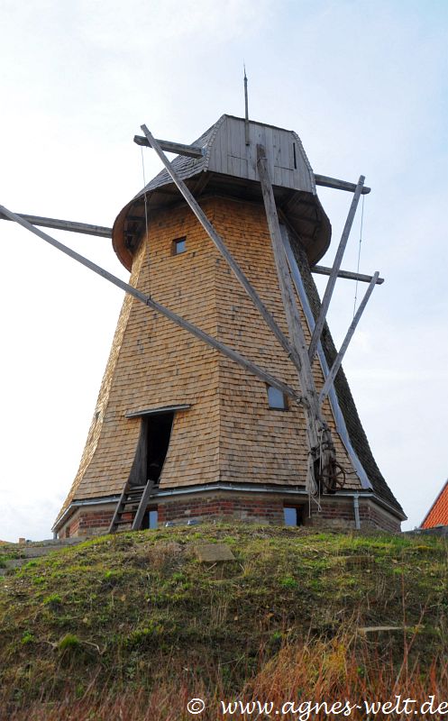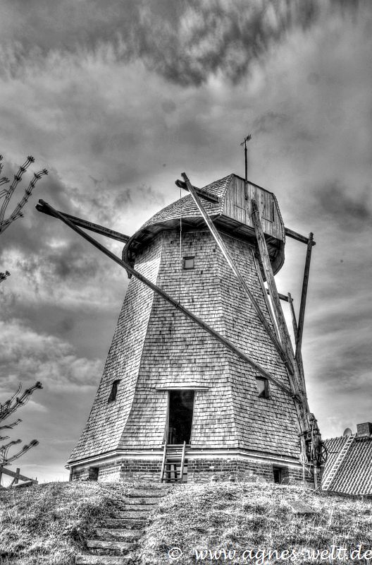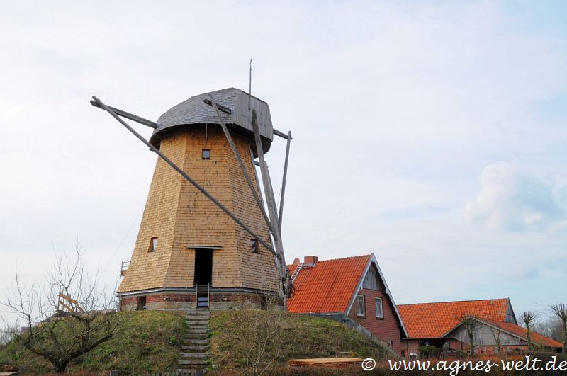 In der Bauernschaft Hansell (Altenberge) steht diese 200 Jahre alte Achtkantwindmühle, eine Holzholländer Mühle auf gemauertem Sockelgeschos.