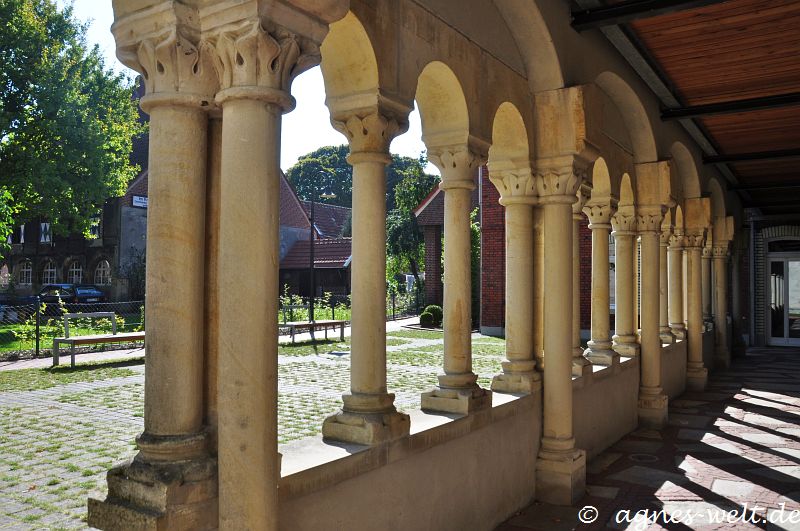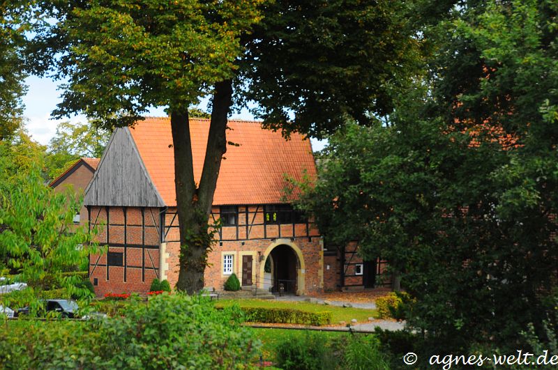 Unser erstes Ziel war die (angeblich) 1000 Jahre alte "Dicke Linde" in Legden-Asbeck. Seit den 80er Jahren ist der beschädigte Stamm durch Drahtseile gesichert. Nicht weit entfernt befindet sich die Wassermühle Asbeck, die (wie viele weitere Gebäude in Asbeck) zum ehemaligen Besitz des adeligen Damenstiftes Asbeck gehörte. Asbeck hat knapp 2.000 Einwohner, und dafür hat der Ort sehr viel zu bieten (außer Linde und Mühle). Das historisches Torhaus, Hunnenpforte genannt, die St. Margaretakirche, das einstige Dormitorium (mit dem heutigen Stifts-Museum), die zweistöckige Arkadengalerie des Kreuzganges sowie das ehemalige Äbtissinnenhaus vom früheren Damenstift Asbeck und die die Vogtei. Weiter ging es zur Düstermühle, eine historische Mühle mit Mühlenwehr, außerdem besteht dort im Landgasthof eine Möglichkeit zur Einkehr. Danach wartete eine Überraschung auf uns, kurz vor Nienborg kreuzten wir die Donau, oder besser gesagt den Donaugraben ;-) Nienborg (bedeutet Neue Burg) ist ein kleines Dorf zur Gemeinde Heek gehörend, auch hier stellten wir unsere Räder ab, um uns den Ort anzusehen. Sehenswert ist das Hohe Haus, es ist eines der drei noch erhaltenen Burgmannshäuser, die die Reste der ehemaligen Landesburg Nienborg darstellen. Der Burgmannshof von Keppel (Privatbesitz, nur ein Blick von außen möglich) und das "Lange Haus" ebenfalls ein Burgmannshaus (heute die Musikakademie). Auf dem Grundstück vom Hohen Haus ist das Wachtmeisterhaus zu Burg Hohes Haus, eine Unterkunft mit mehreren Bed- & Breakfast-Einheiten. Gut geeignet als Unterkunft für Rad- und Wandertourenn im Münsterland. Bei der Weiterfahrt stoppten wir noch bei der Kornwassermühle an der Dinkel. Kurz bevor wir wieder unseren Startpunkt erreichten, hielten wir noch an der St. Antonius - Pestkapelle in Gemen (Schöppingen). Gesamtstrecke ca. 32 km / Alle Fotos haben erklärende Bildunterschriften.