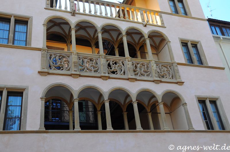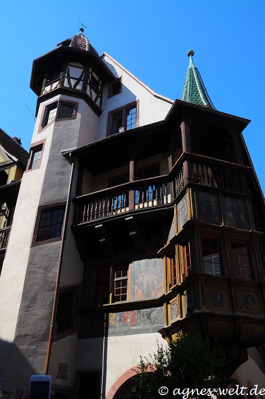 Mit seinem unverkennbaren Ecker, der Holzgalerie, den achteckigen Türmchen sowie der dekorativen Wandmalereie ist das Pfisterhaus zu einem Symbol Colmars geworden.