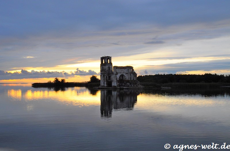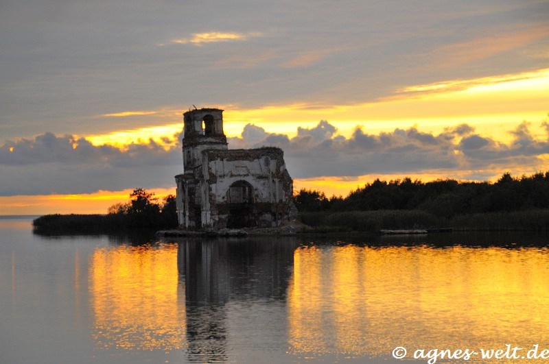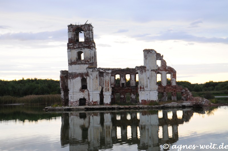 Aber vorher durchfuhren wir noch den Weißen See und konnten uns an dem Anblick der Ruine von Krochino „satt fotografieren“.