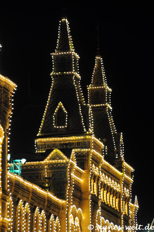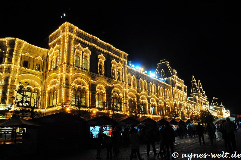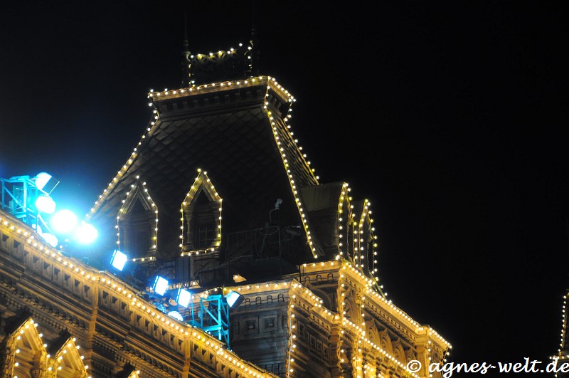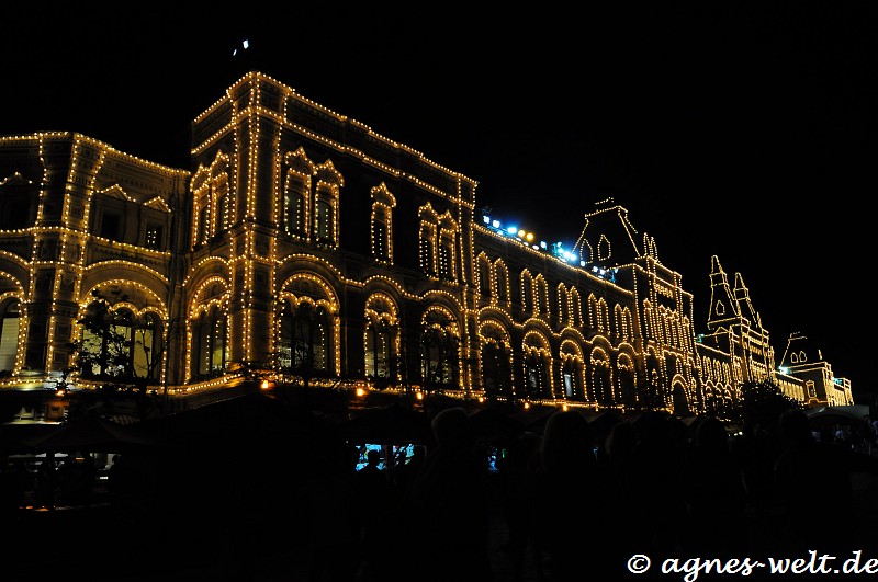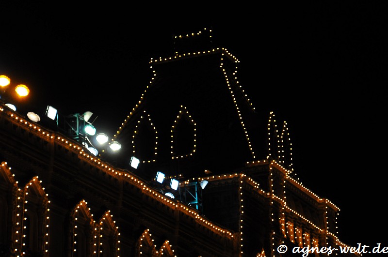 Mit unvergleichlichem Lichterglanz werden z. B. die ohnehin schon wunderschönen Gebäude rund um den Roten Platz zu einer Traumkulisse.