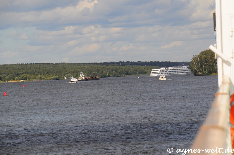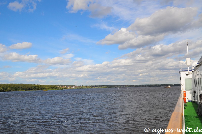 Bis Uglisch, unserem nächsten Ziel, werden wir 262 km fahren, dort werden wir in ca. 24 Stunden ankommen. Auf dem Landweg wären es nur 90 km von Moskau bis Uglitsch.