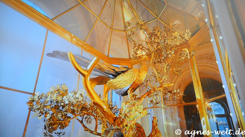 Im Pavillonsaal, wo Katharina II. ihr Kabinett hatte, befindet sich die Pfauenuhr (Peacock Clock), eines der berühmtesten Ausstellungsobjekte der Eremitage.