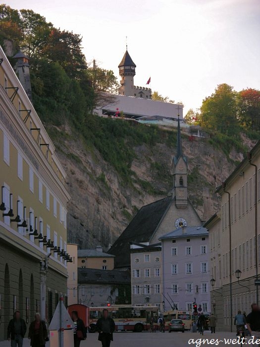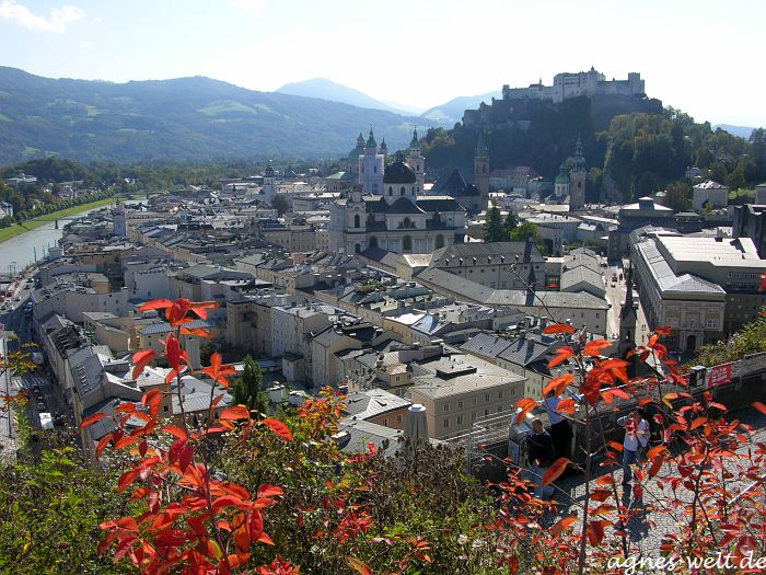 Der historische Altstadtkern befindet sich an der Salzach und wird von Festungs- und dem Mönchsberg begrenzt.