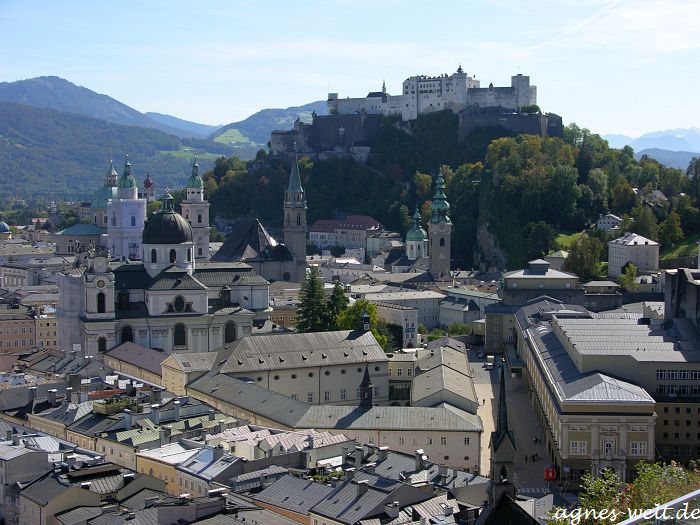 Die Festung Hohensalzburg stammt im Kern aus dem 11. Jahrhundert. Sie ist eine der größten europäischen Burganlagen des Mittelalters und gilt als Wahrzeichen der Stadt. Der bekannteste Salzburger ist sicherlich Wolfgang Amadeus Mozart. Nicht umsonst trägt die Stadt den Beinamen "Mozartstadt" und der Flughafen den Namen Salzburg Airport W. A. Mozart. Das historische Zentrum der Stadt steht seit 1996 auf der Liste des Weltkulturerbes der UNESCO. |