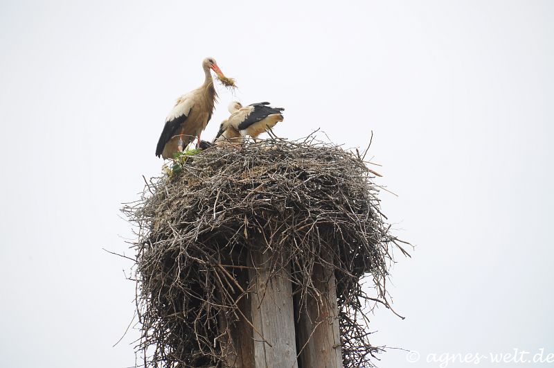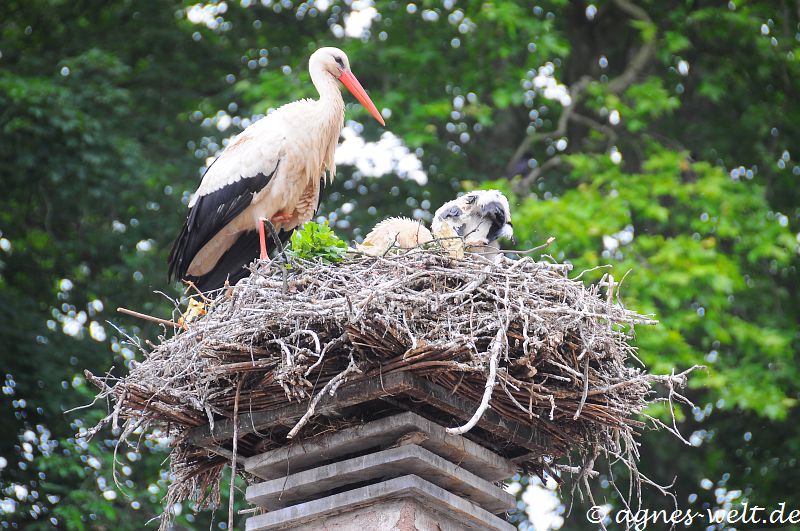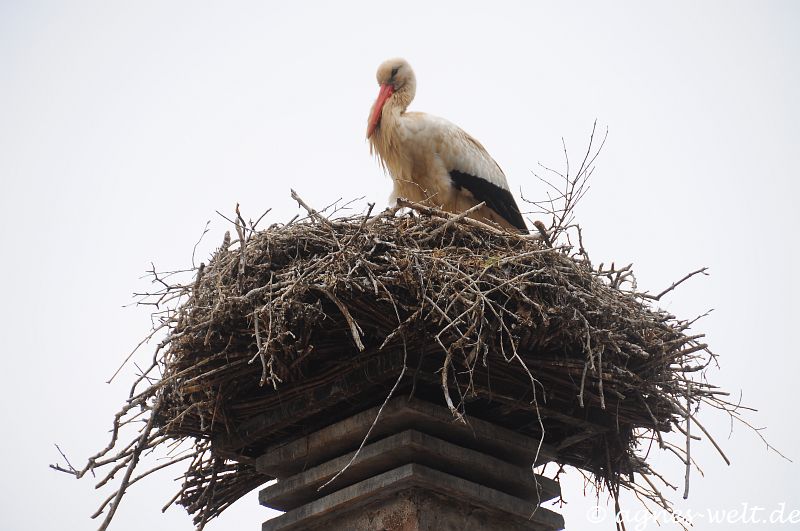 Aber auch echte Störche findet man reichlich auf den Dächern und Kirchtürmen im Elsass,