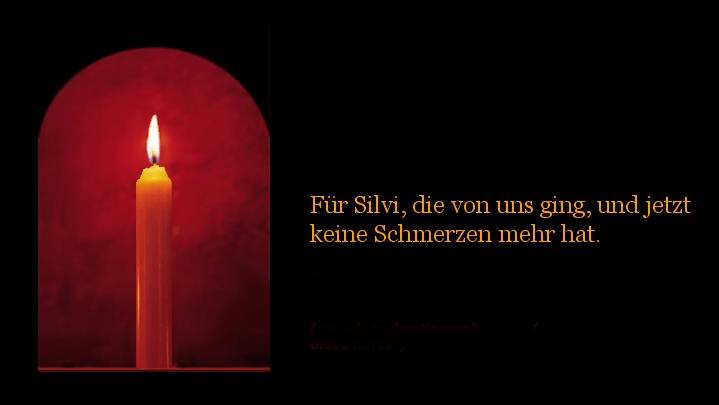 Freunde, sie fehlt uns, -- aber gönnen wir ihr die Schmerzfreiheit, die Ruhe und den Frieden.